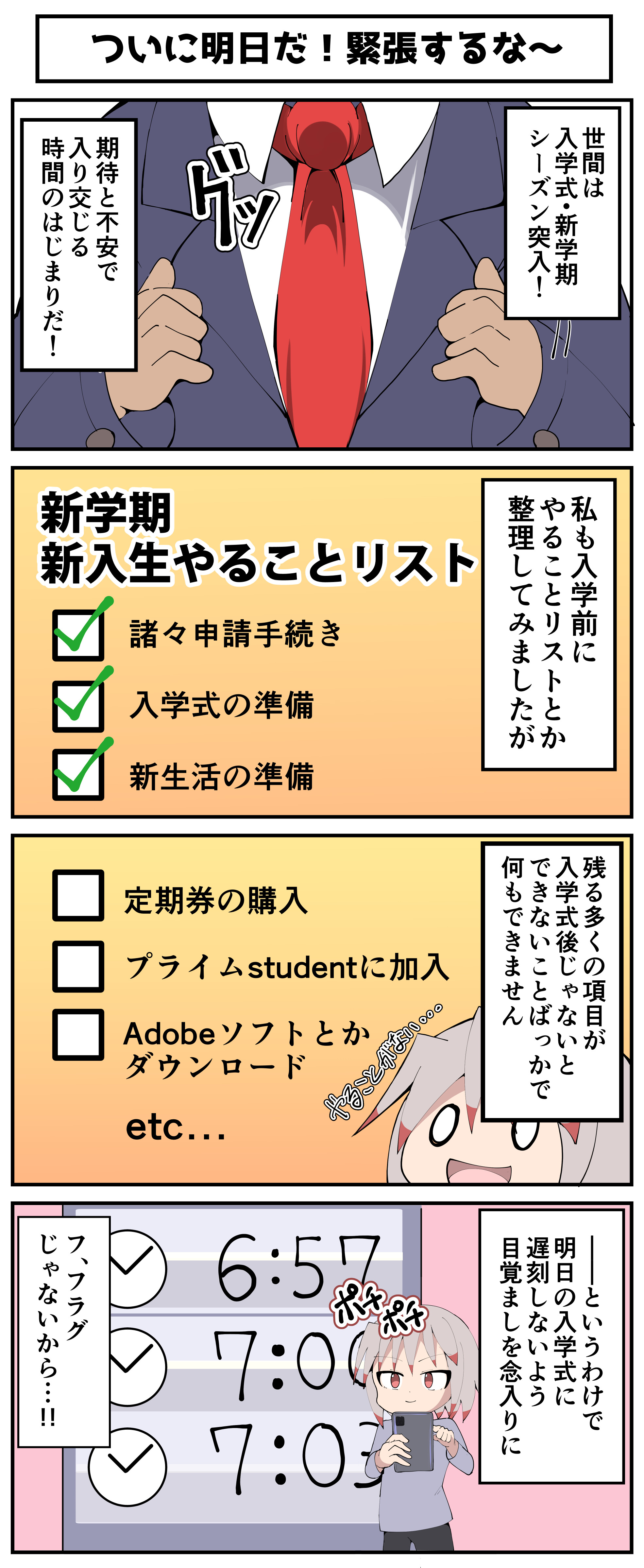 おそらく明日は入学式とあわせてオリエンテーションもあると思うので 、