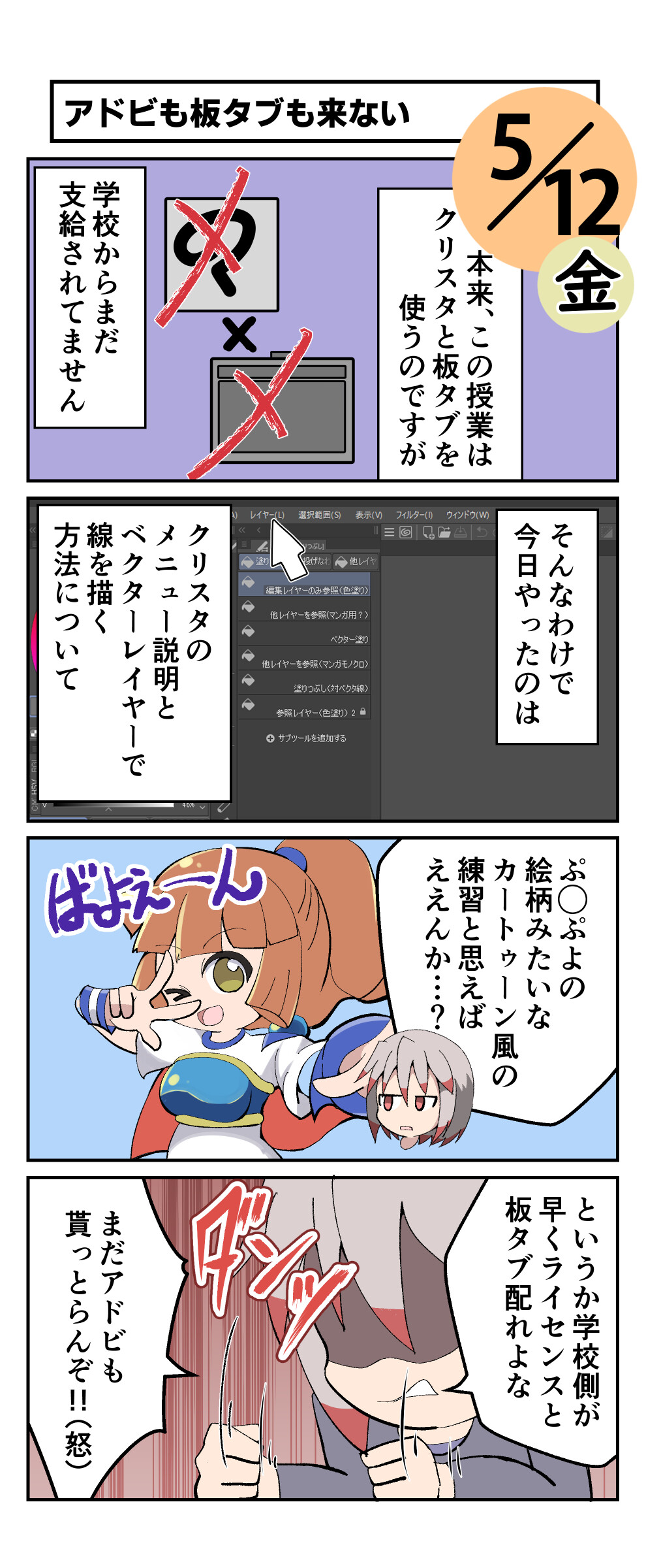 一向に学校から「クリスタ」と「板タブ(ペンタブレット)」が配布されません。