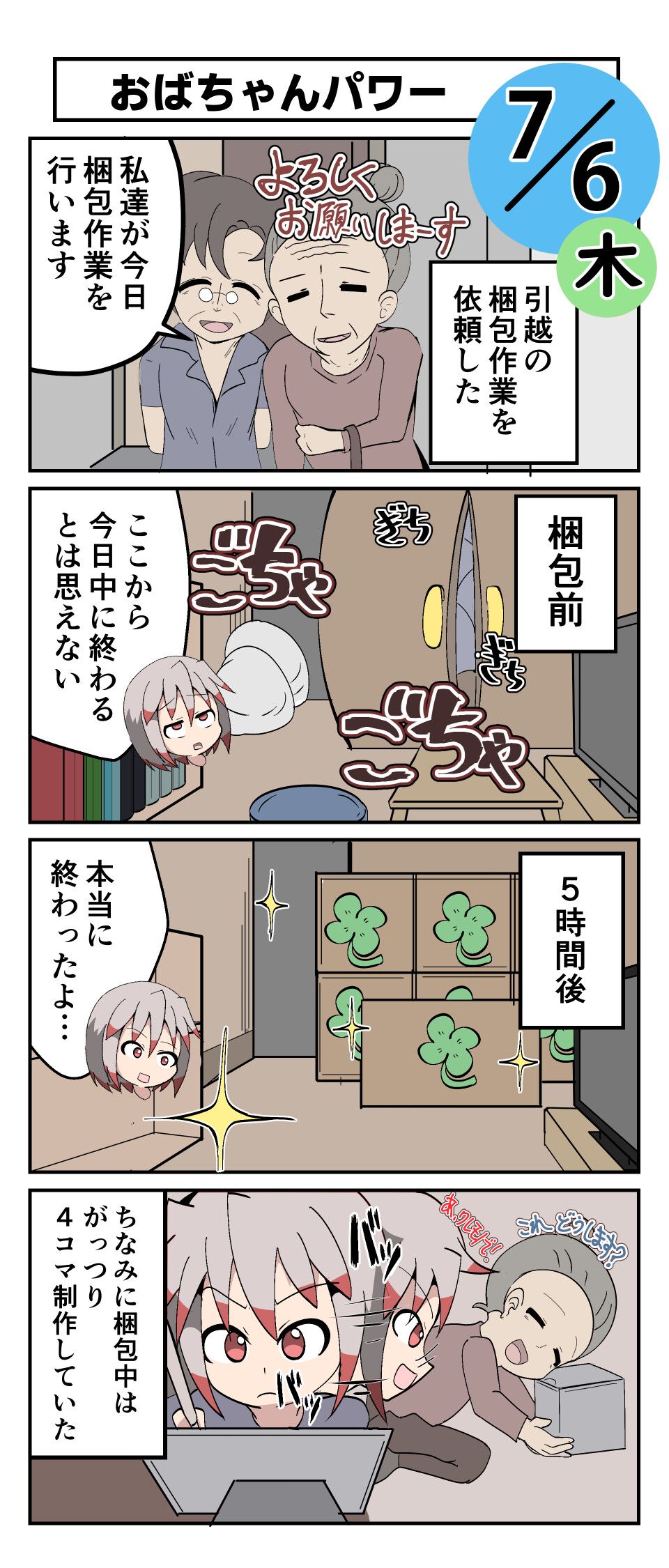 その間私は、4コマの作業をせっせこ進めてました。時々確認だったり、高いところのモノを取ったりしたけど、基本的に私何もしてない。