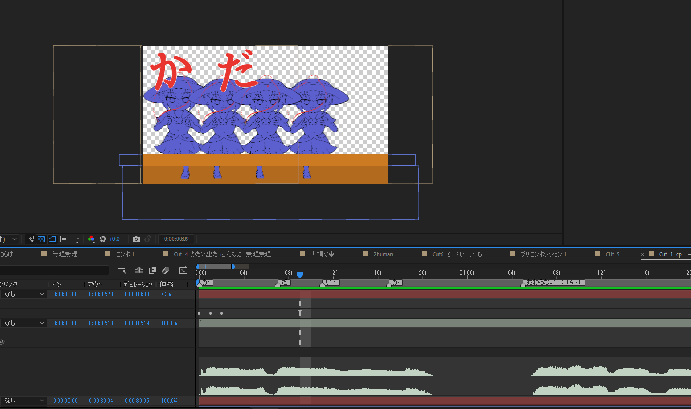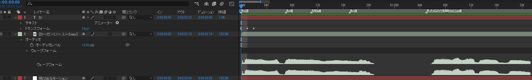 AfterEffectsに乗っけて、音声とそのセリフを合わせることくらいしかできましぇん。