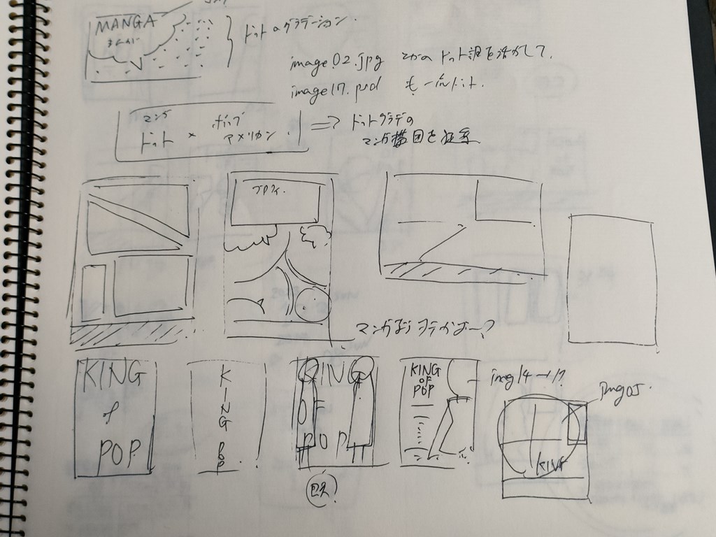 とりあえず思いついたやつをクロッキー帳にアウトプットしてみる。