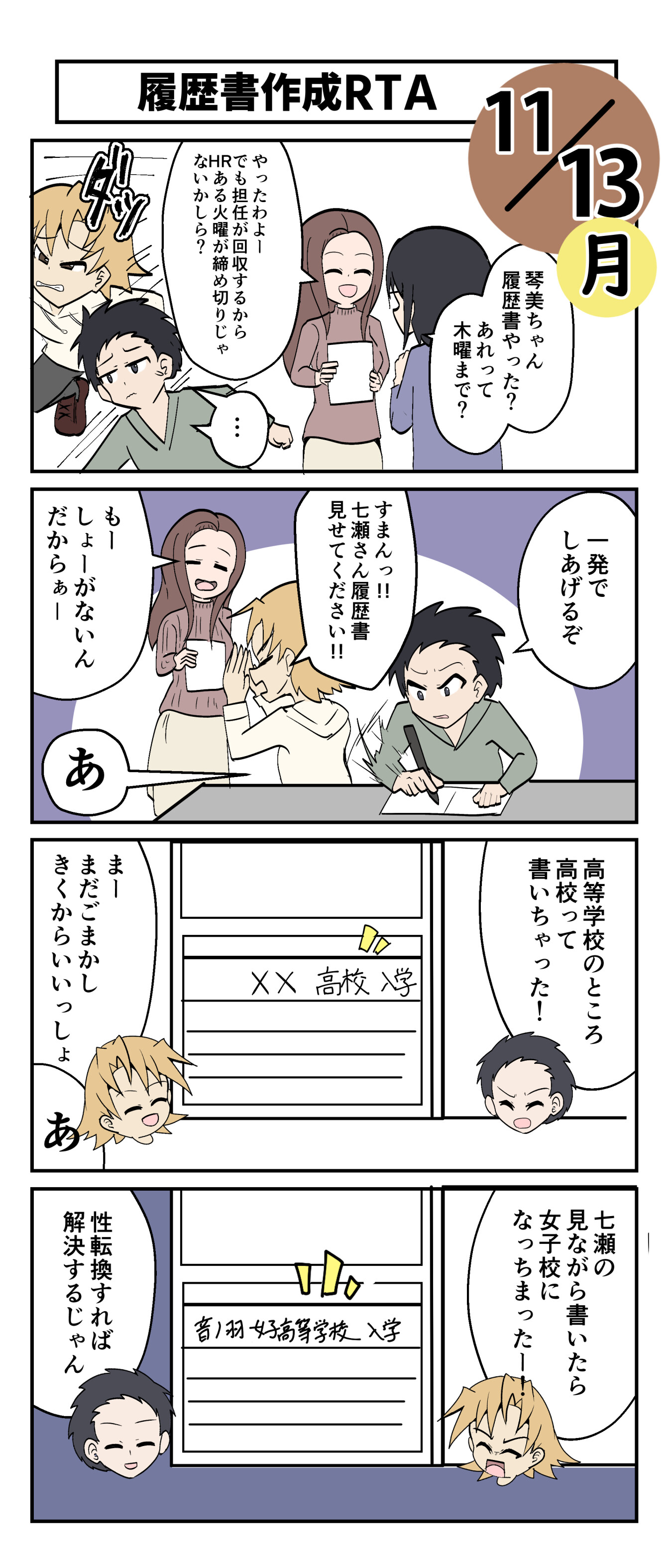 あと高校名のところ「◯☓高等学校」って書かないといけないところ「◯☓高校」って書いちゃったり。