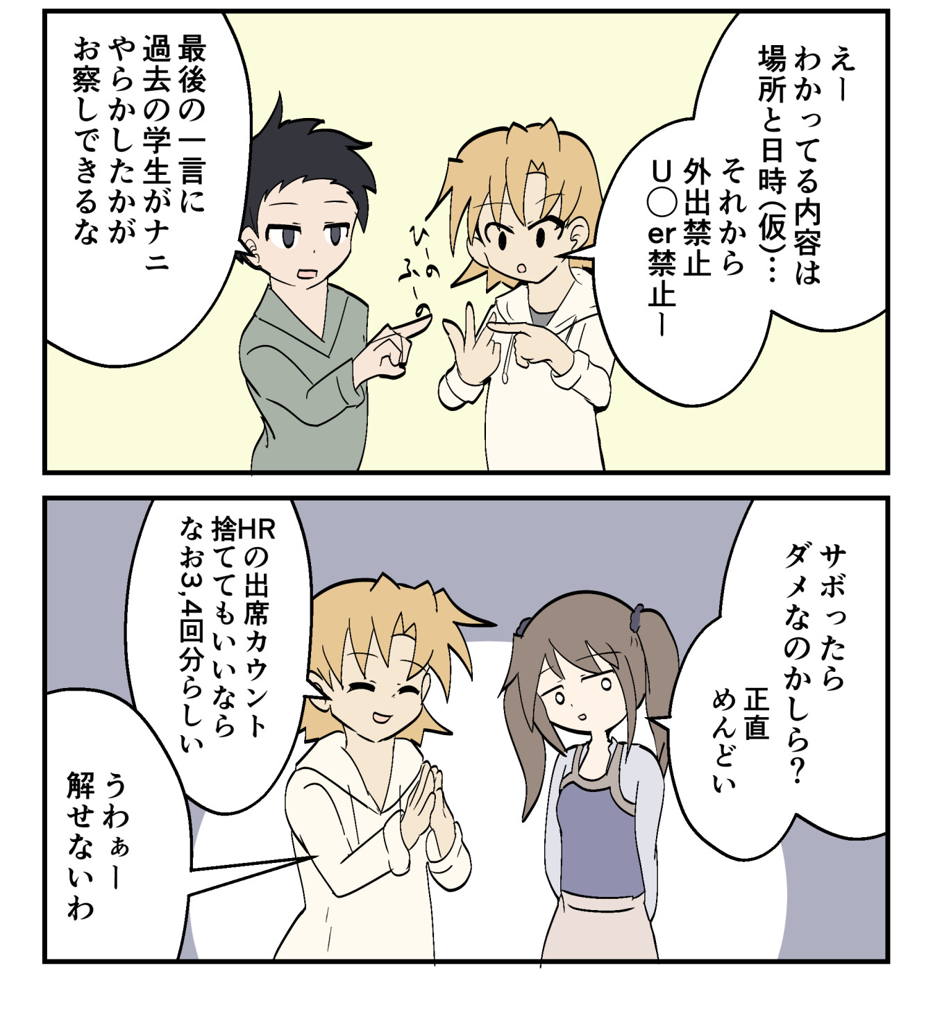 このイベントがホームルームの出席が4回(?)分兼ねているという事実。