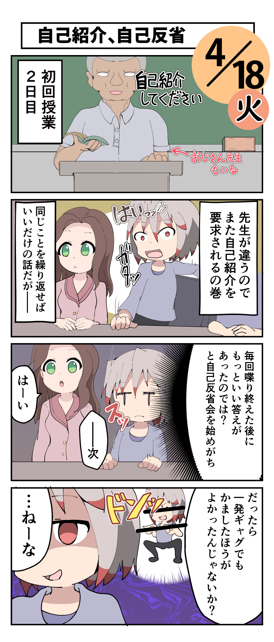 2023年04月18日 シンプルで難しい自己紹介 初回授業2日目です。授業ごとに先生が違うので、初回は大体先生の自己紹介とかだと思っていたのですが、私達にも自己紹介を振られることも…自己紹介なんて同じ言い回しをロボットのように繰り返せばいいと思っていたけども、喋り終えたあとにやっぱこういったほうが良かったかな?とか色々考えて自己反省しがち。いっそのこと一発ギャグ噛ませればよかったんですかねぇ?課題結構あるじゃん?各授業の初回に、課題数と成績課題についての説明があるのですが、思ったより課題数あるな?という印象。通期科目とかもあるので年間通してみればそうでもないかもしれないけど、これが各授業で出ると思うとちょっと身構えちゃうよね 「授業」カテゴリの最新記事 < 前の記事次の記事 > コメント コメントフォーム 名前 コメント 記事の評価 リセット リセット 顔 星 情報を記憶 コメントを投稿する