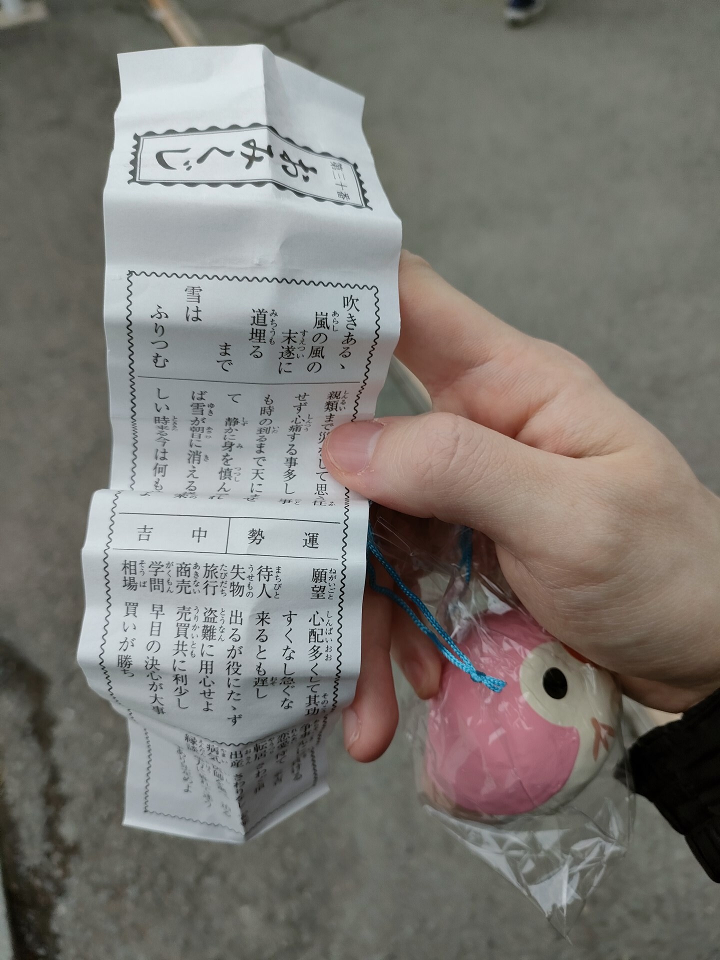 裏道使って裏から神社に入って破魔矢とかおみくじを買いました。