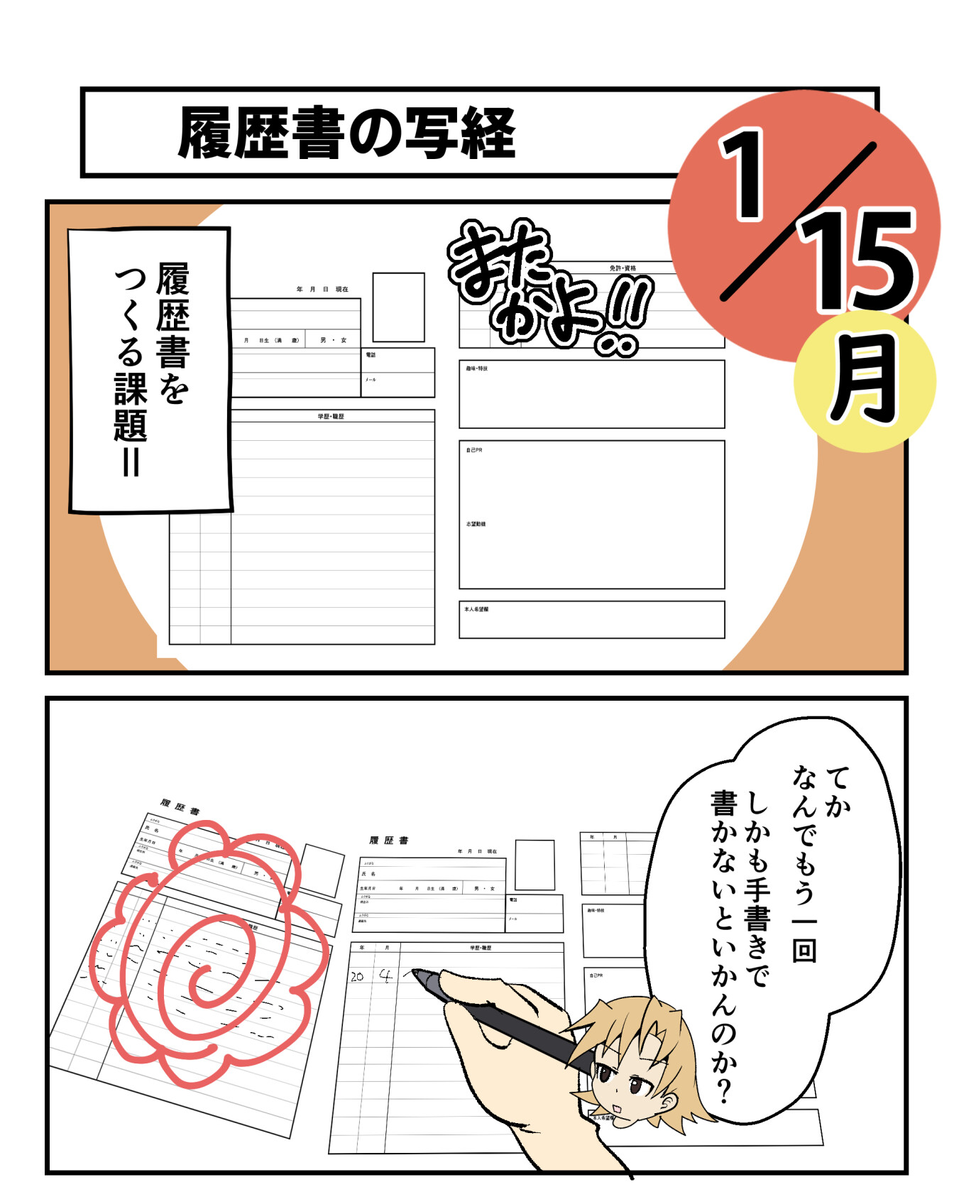 しかも前回書いた履歴書の続きじゃなくて