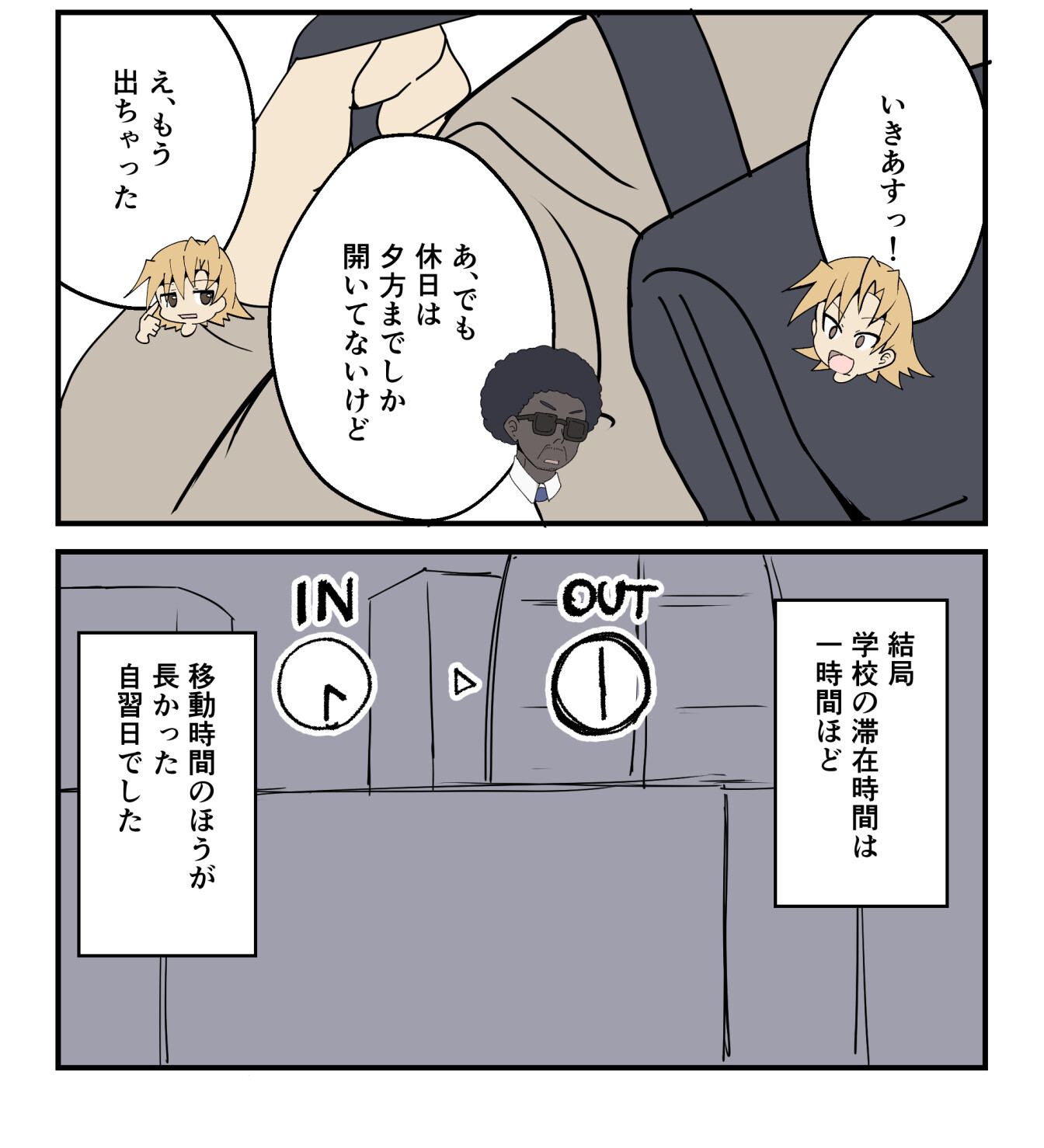 移動時間も考慮すると学校に滞在したの1時間くらい