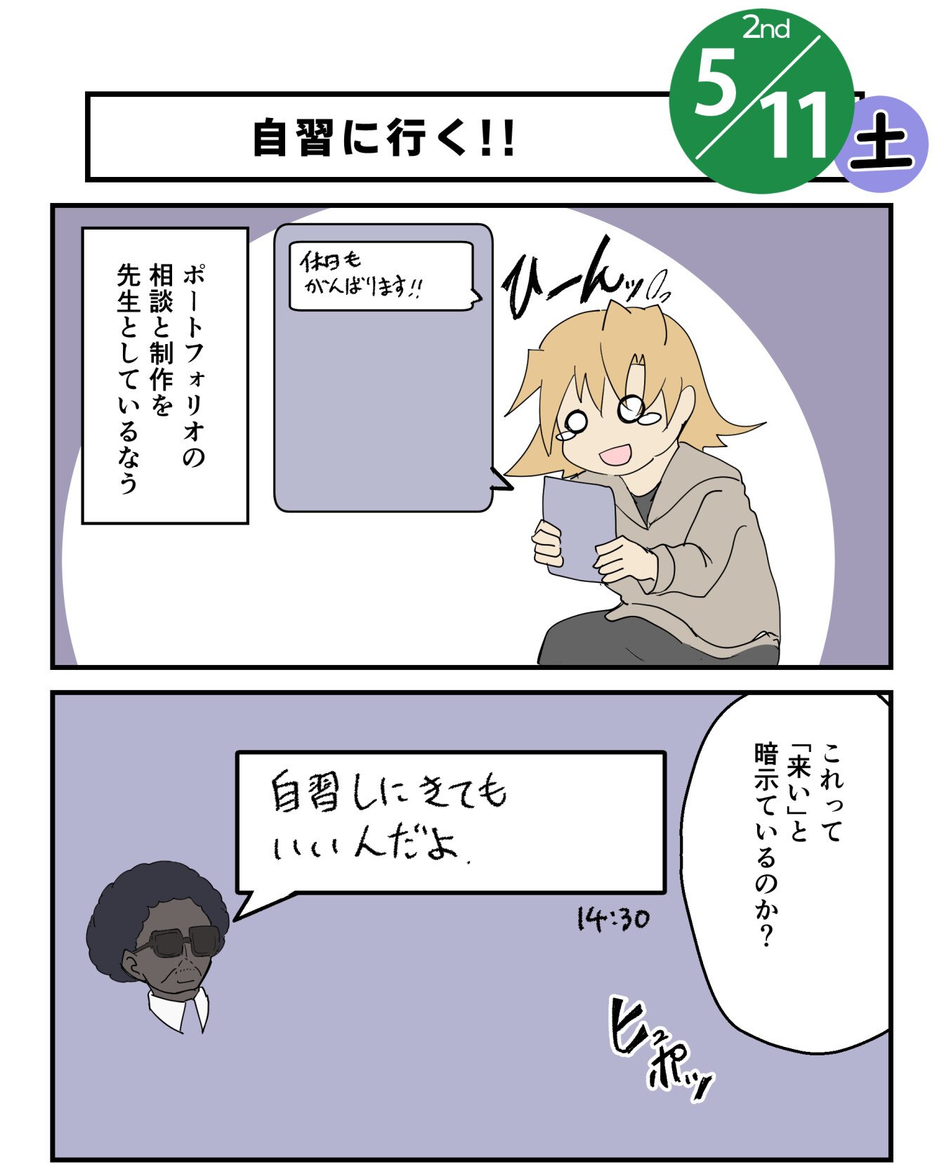 ポートフォリオできてないから、担任に相談とかしてたら土曜日学校空いてるよ的なことほのめかしてきたので、