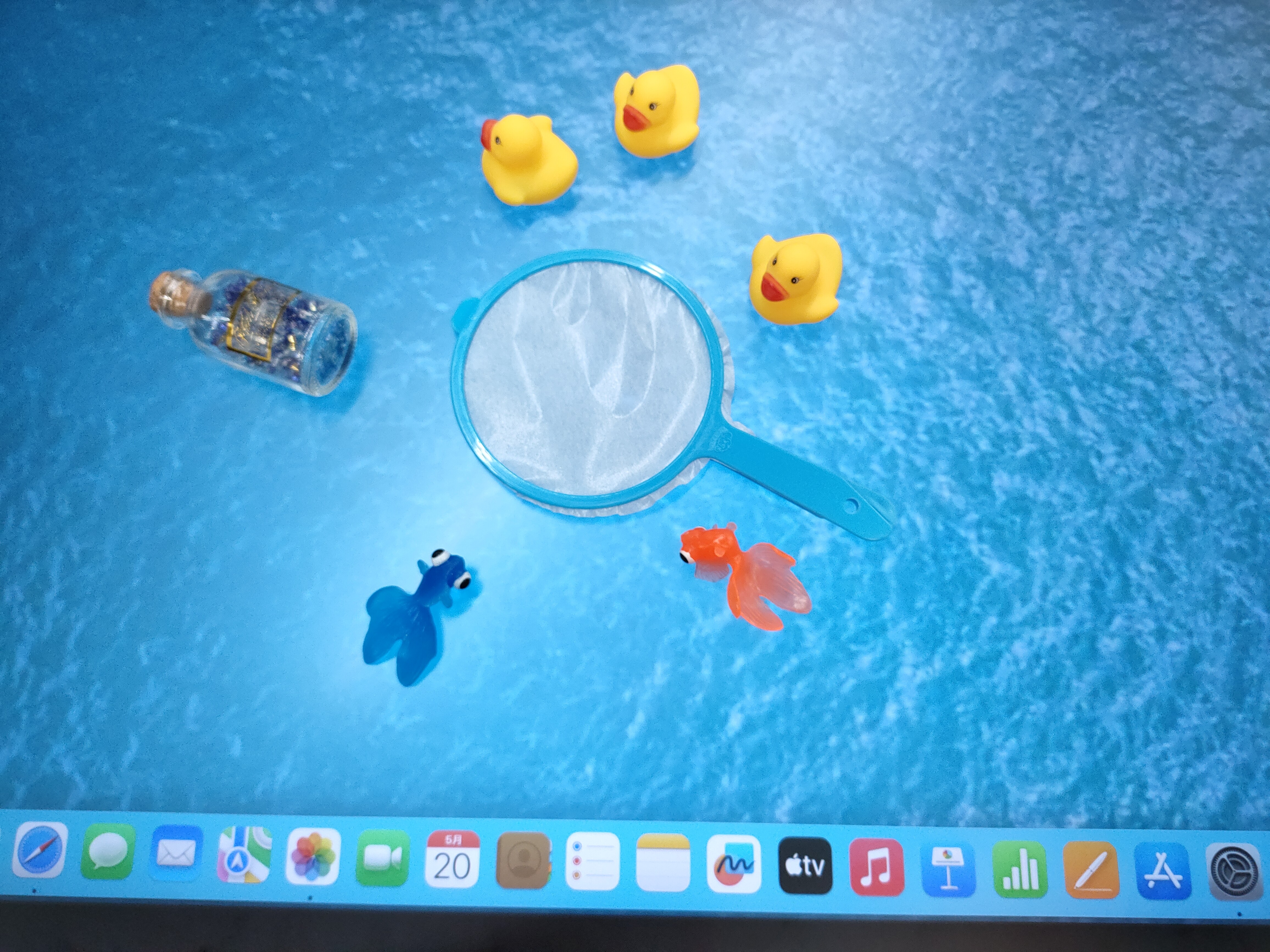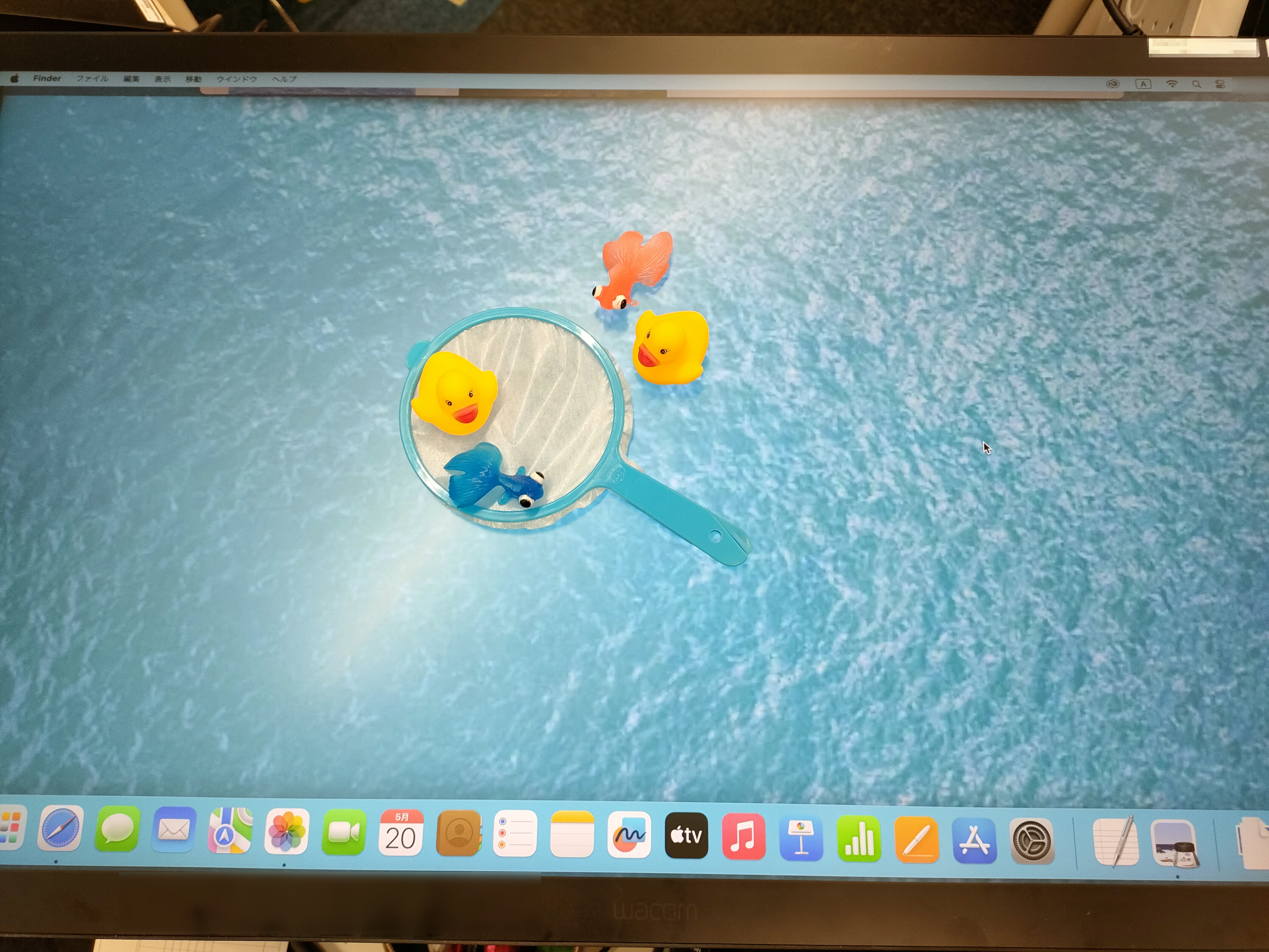 撮影ということで、こんなこともしてみた。アーム部分でモニターの角度を動かせるので、水平にして壁紙を変更させると…