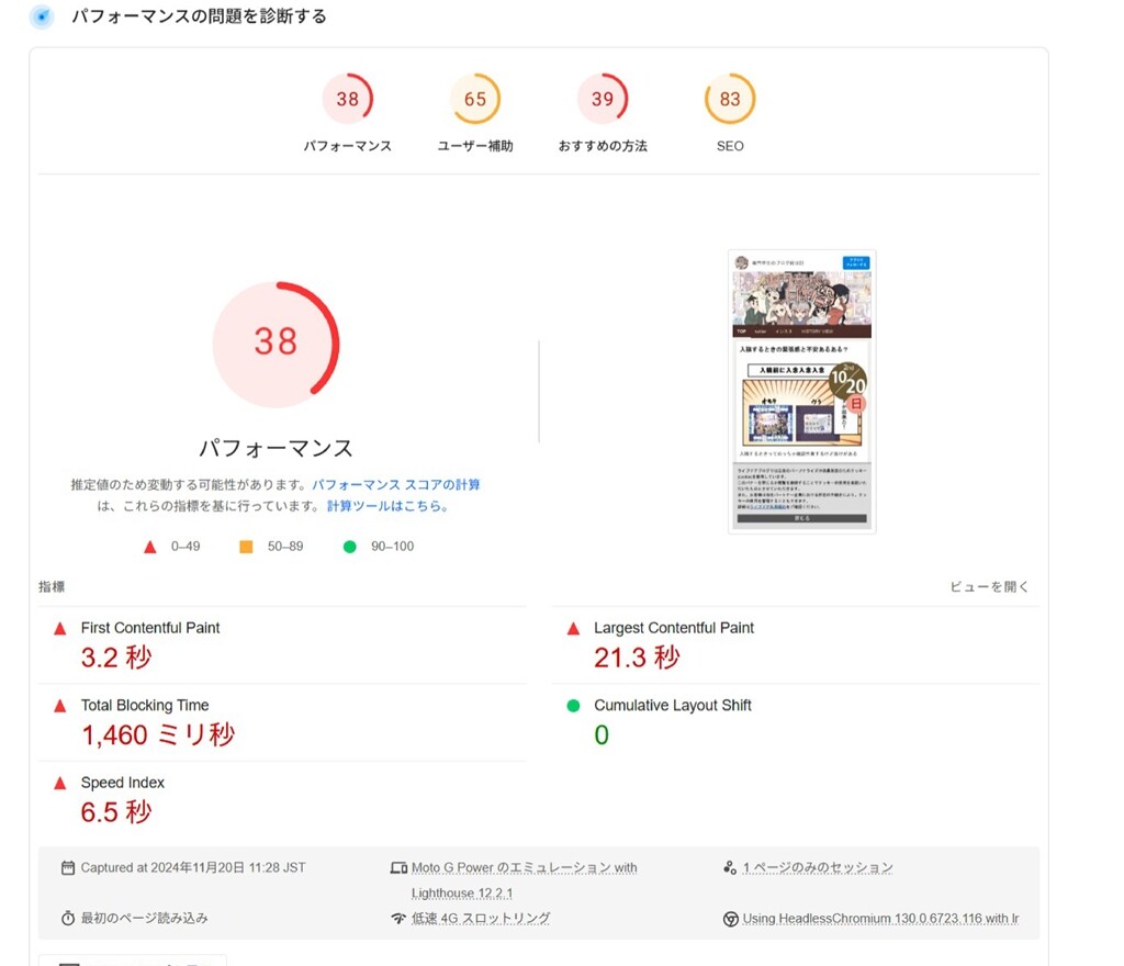 まぁ、実際問題pagesight insghtも「問題あり」になっているから、どうにかならんかなぁ…と