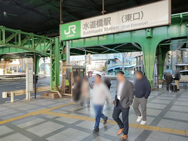 水道橋駅。いわゆる学生街ともいわれる付近に学校はあるようで。