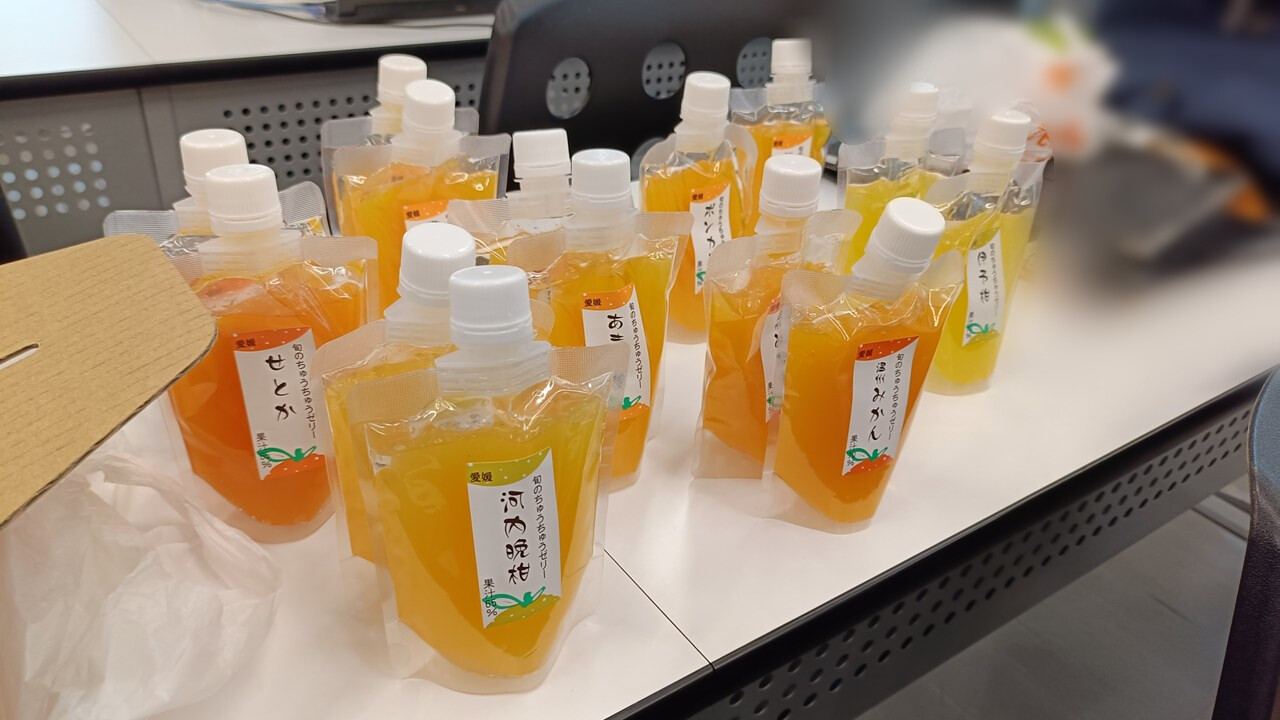みかんの「ちゅうちゅうゼリー」を人数分お土産用に買ってきた。